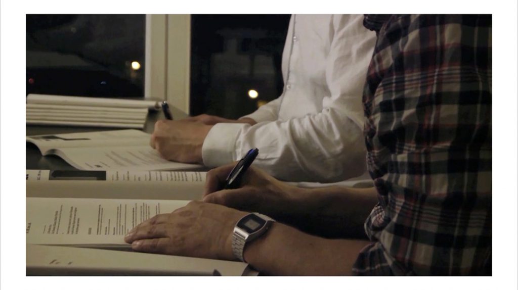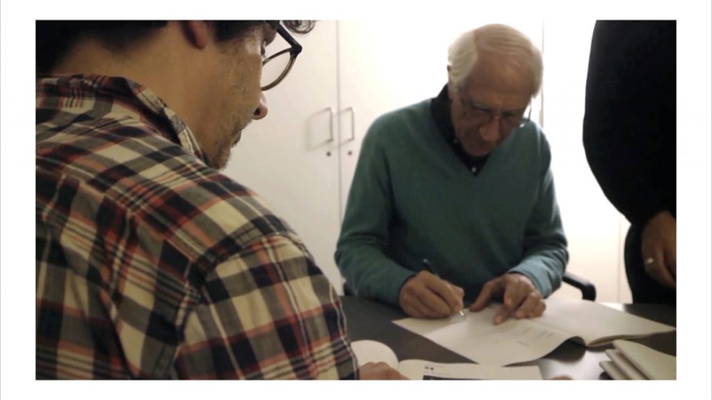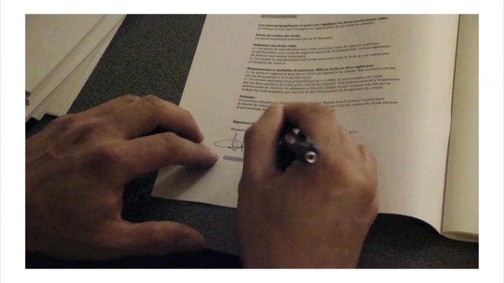 Avec un cadre blanc, montage de plusieurs plans filmés par Benoît Rossel le 15 novembre 2014 chez Ghislain Mollet-Viéville lors de la deuxième cession d’œuvres de Ludovic Chemarin.